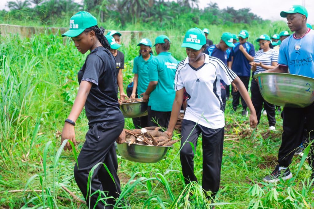 In support of the “Every Home A Garden Initiative” of Nigeria’s First Lady, Senator Oluremi Tinubu, the wife of the President of the Senate, Mrs Ekaette Unoma Akpabio, on Wednesday, led some students of Saint John Paul II College Uyo, on a farming expedition in the state.
