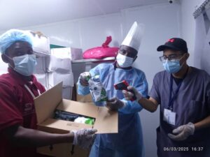Various sections of the kitchen inspected included the Food Store fully loaded with food items such as Indian rice, beans from Myanmar, and Nigerian palm oil.