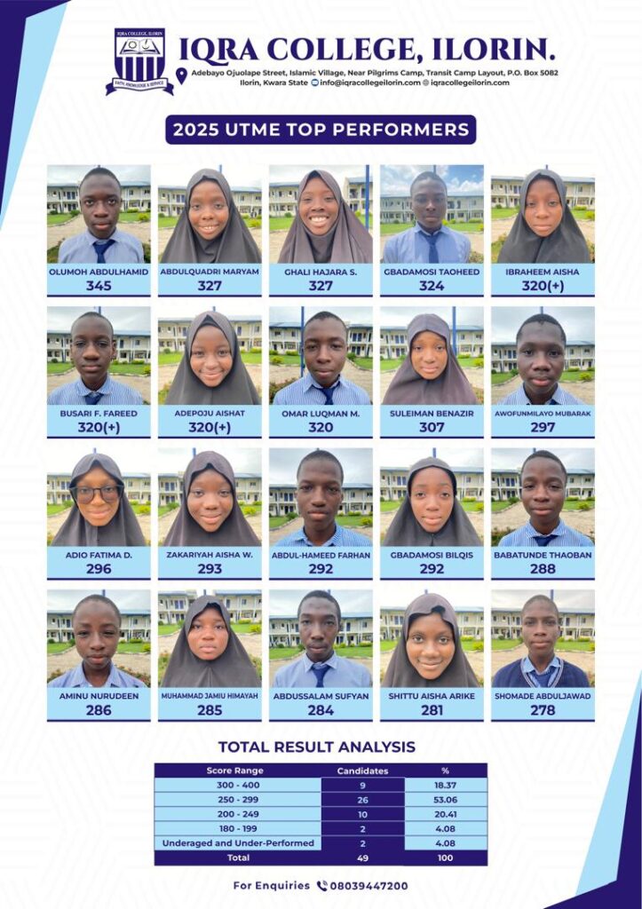 Iqra College, Ilorin 2025 UTME Top Performers