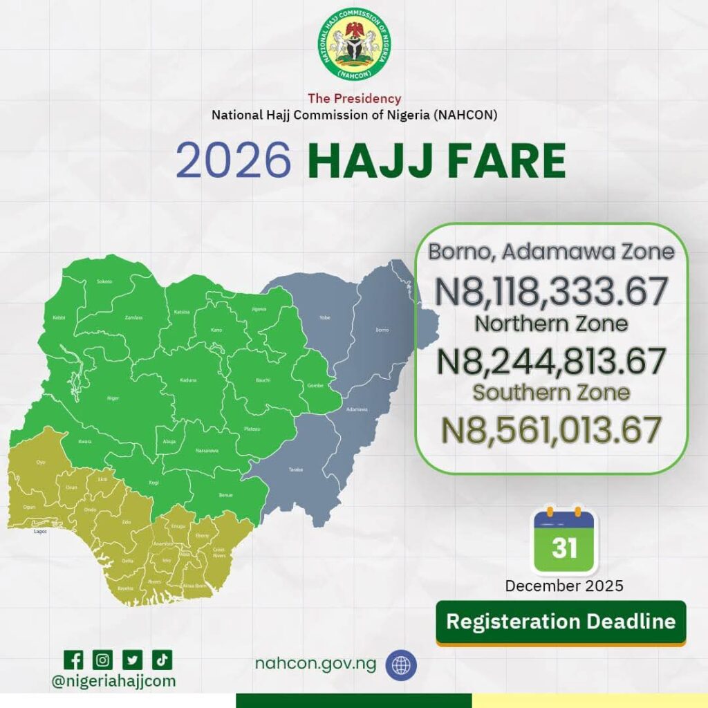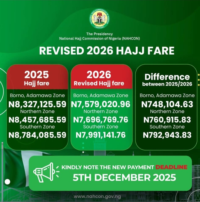 The National Hajj Commission of Nigeria has released the revised 2026 Hajj fare as directed by President Bola Tinubu.
