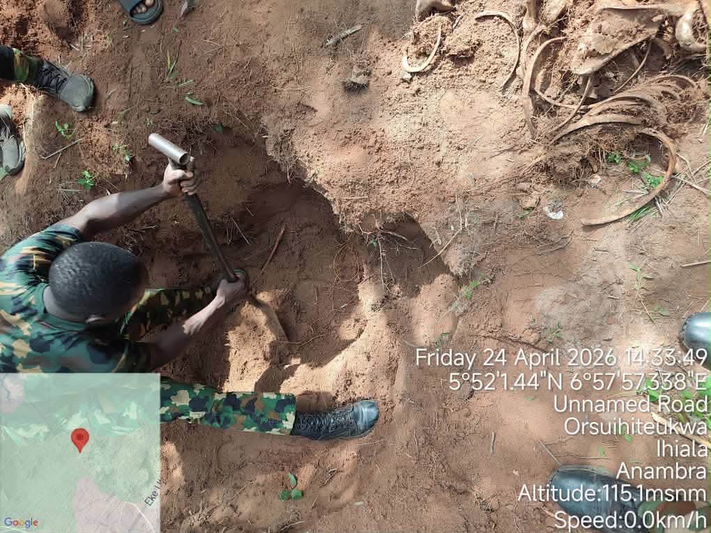 In a statement on Saturday, the Army said “Acting on intelligence information, the operation, conducted on 24 April 2026 along the Ubaha Orsu axis of Orsu Local Government Area, was part of a deliberate clearance and search mission aimed at dismantling IPOB/ESN hideout within the region and locating the remains of two personnel of the Nigerian Army, Master Warrant Officer Linus Musa Audu and Private Gloria Mathew, who were brutally abducted and murdered by IPOB/ESN terrorists in May 2022 while en route for their traditional wedding.