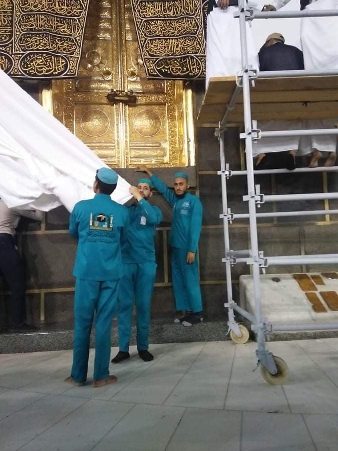Every Year the Kiswah of the Kabah is raised and a white cloth symbolizing the Ihram is put on the Kabah.